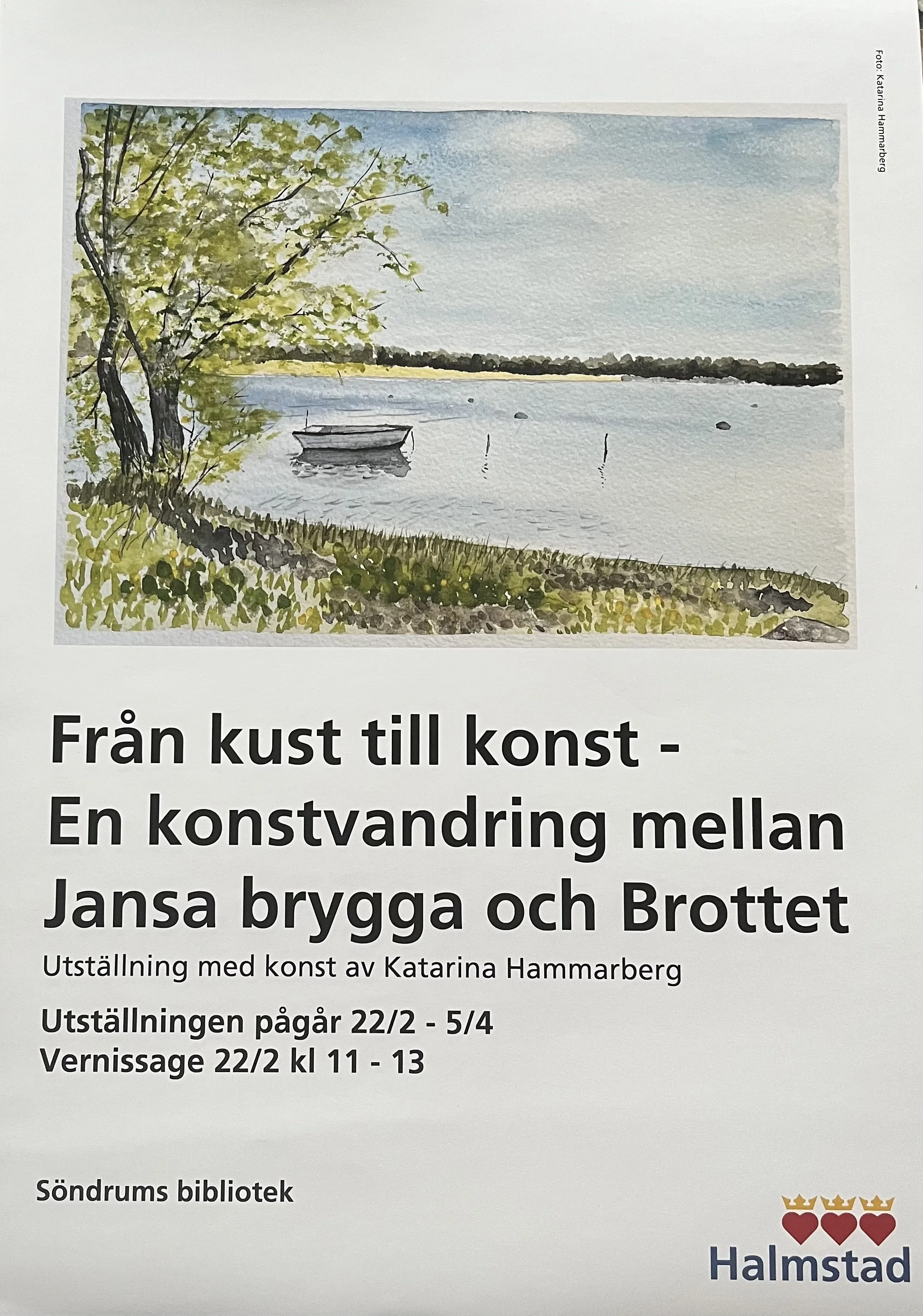 Den 22 februari till den 5 april visas en del av min akvarell- och tovningskonst på Söndrums bibliotek. Kika gärna förbi, liten vernissage blir det den 22/2 mellan 11-13.