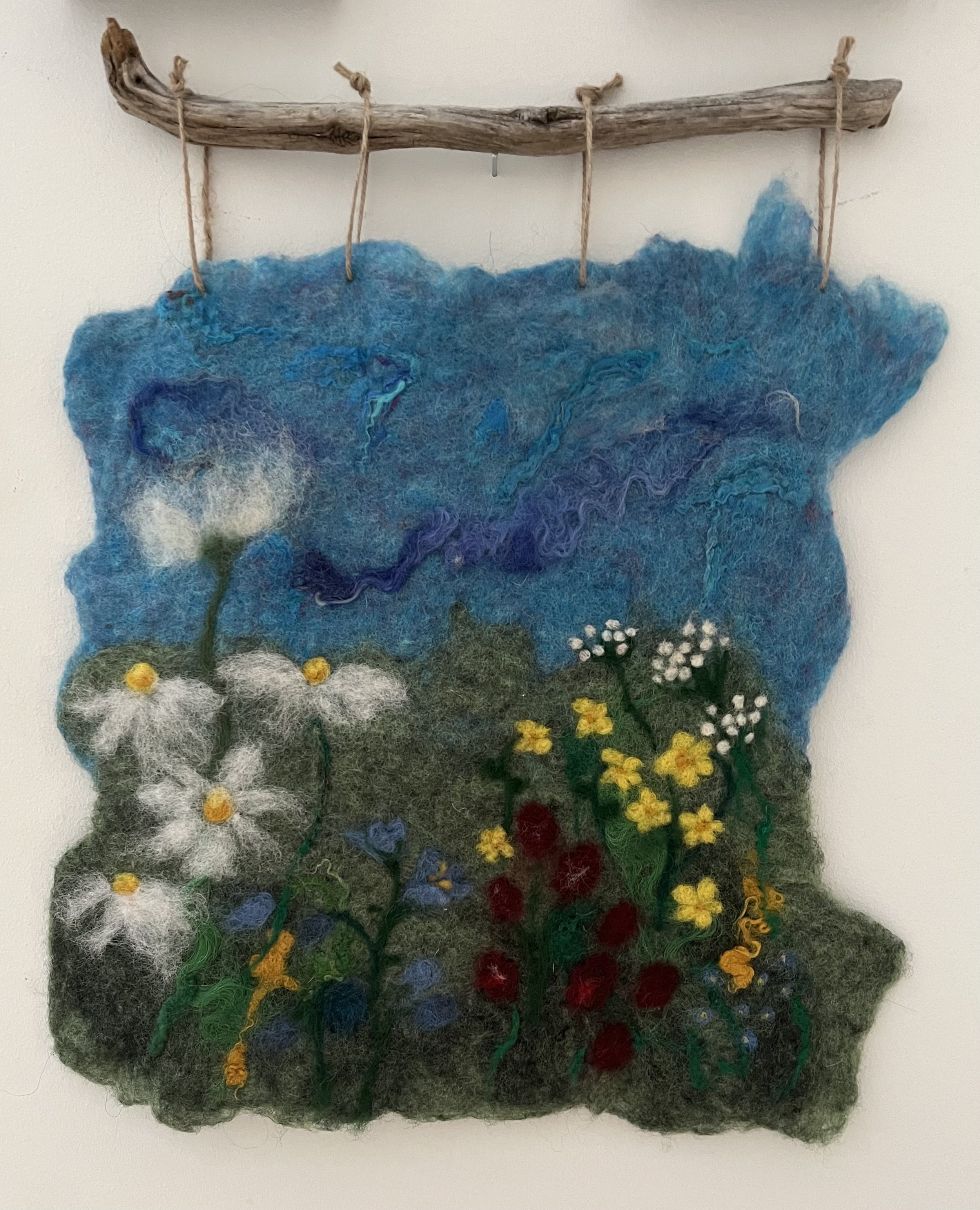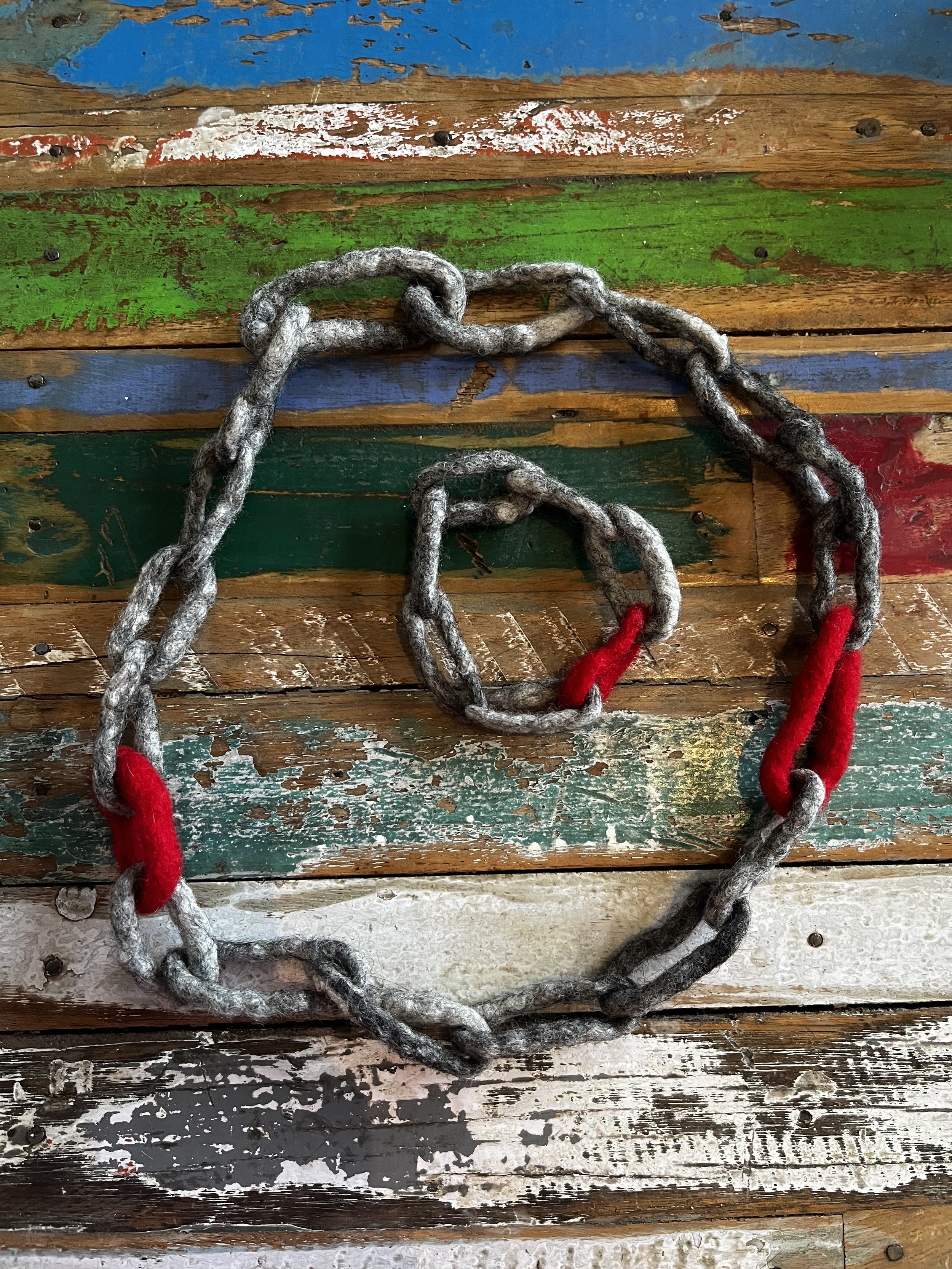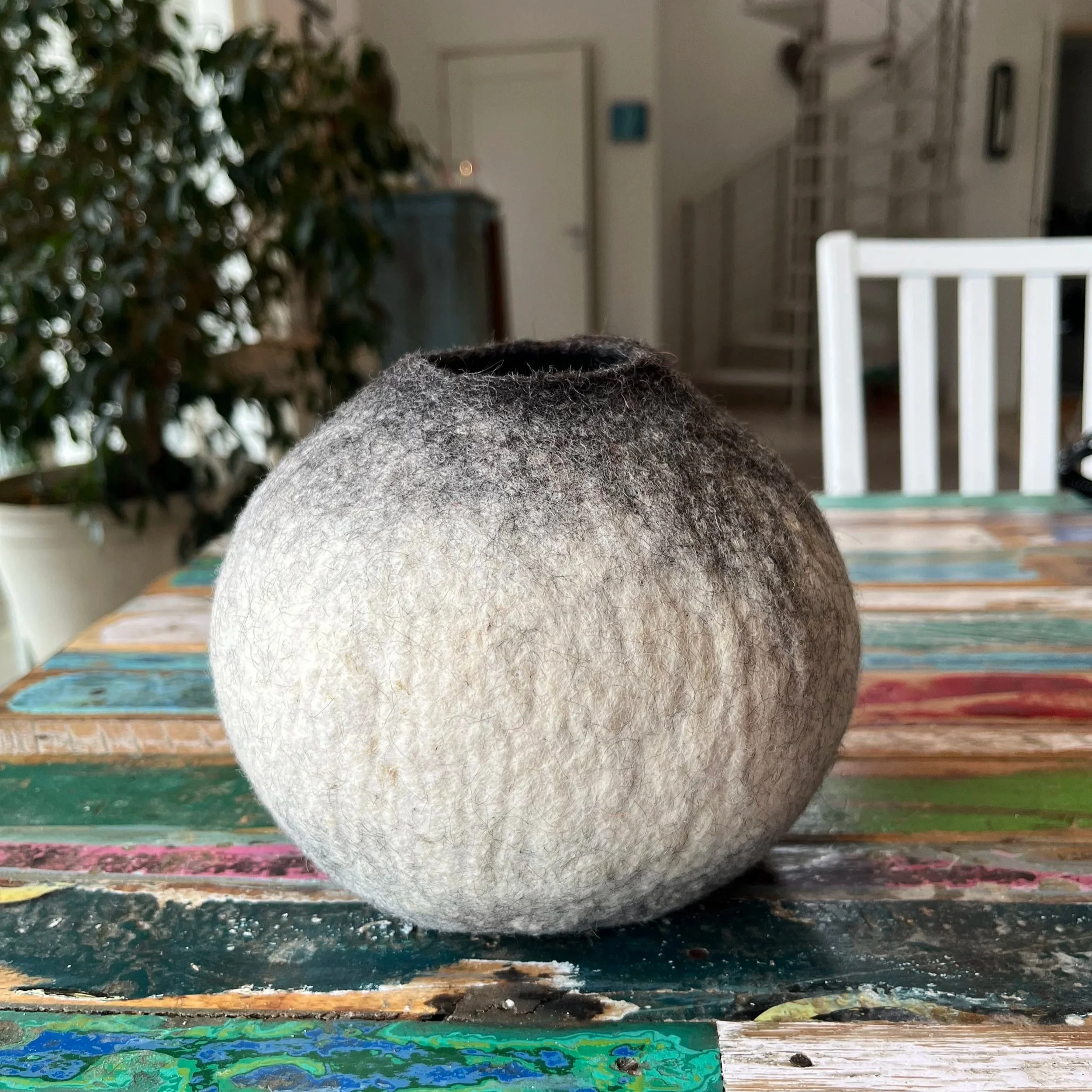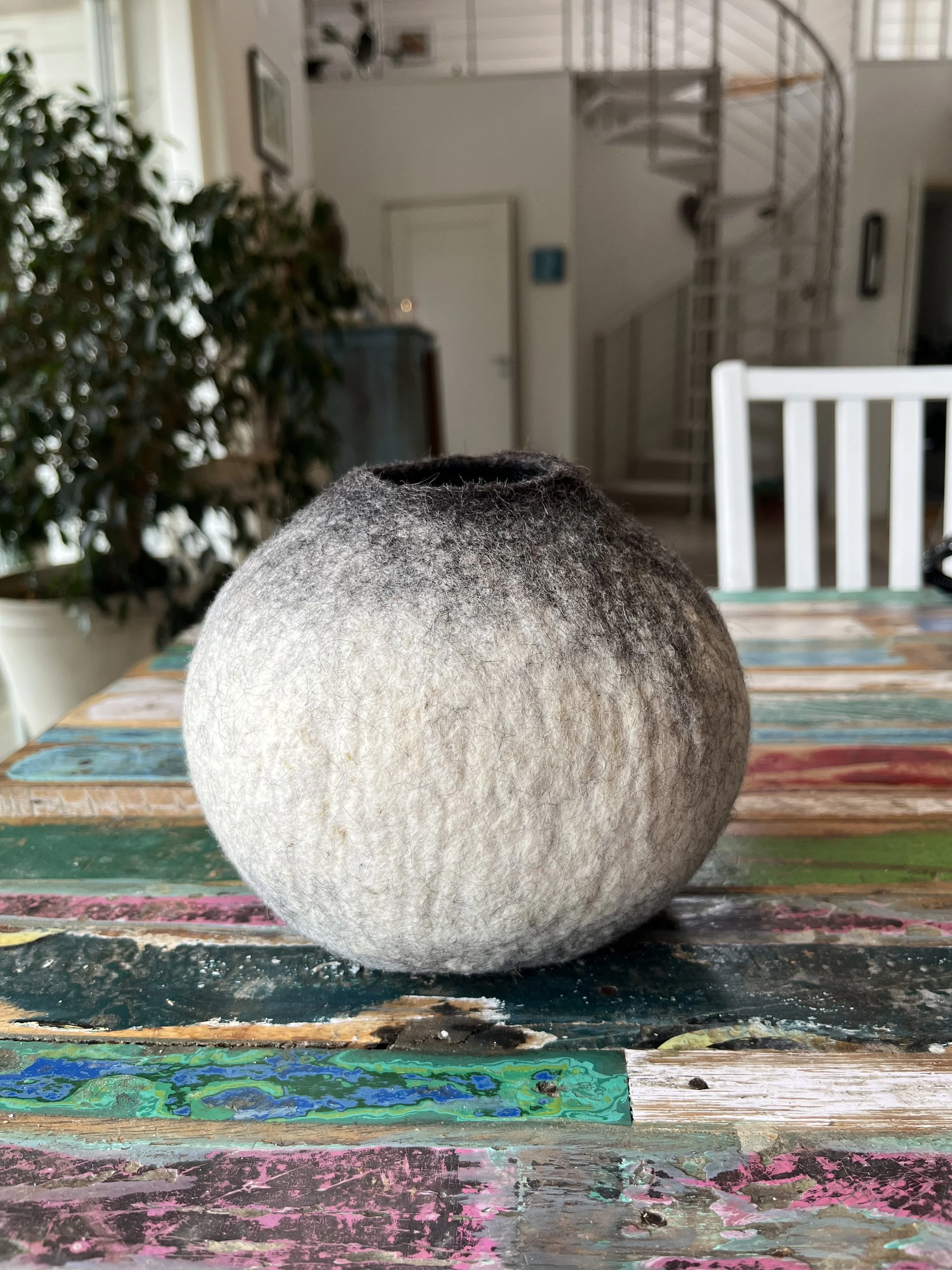 Material: Ull, glas (som ljushållare) samt ljusslinga eller batteridrivet värmeljus